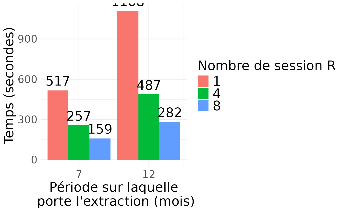 results |> knitr::kable()| start_date | end_date | r_cores | time_taken_seconds | n_rows | Nombre de mois requêtés |